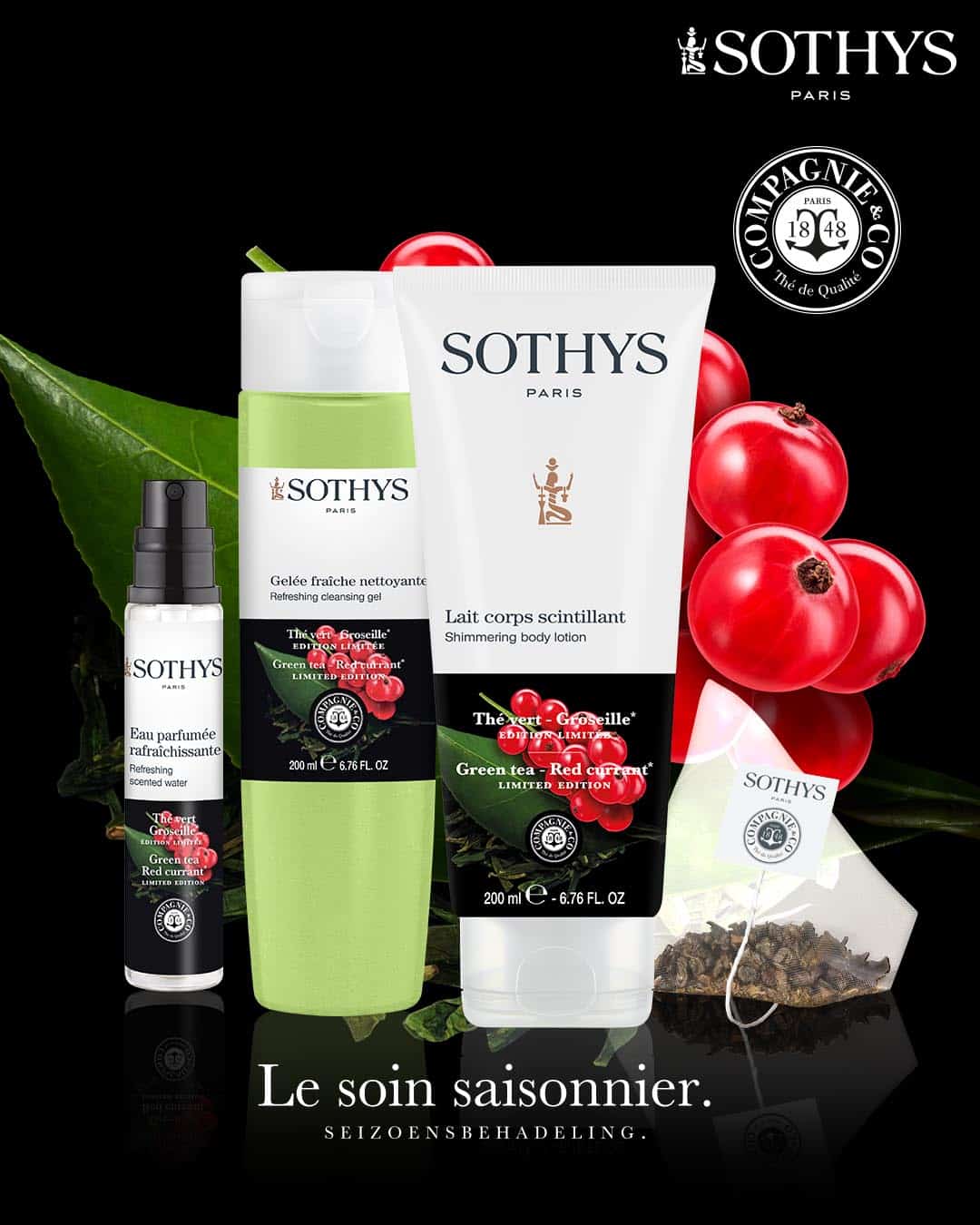 Ontdek de natuurlijke glow van je huid met de Sothys seizoensbehandeling voor de lente – zomer: groene thee en rode bes.